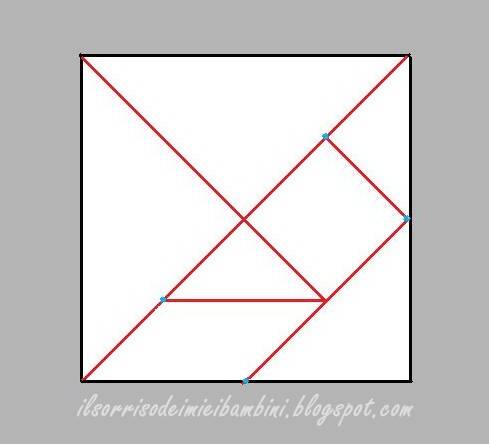 dove i punti azzurri rappresentano i PUNTI MEDI e le linee rosse sono le linee dove tagliare il cartoncino.